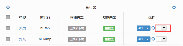 点击风扇的开关按钮,进行下行控制,如下: